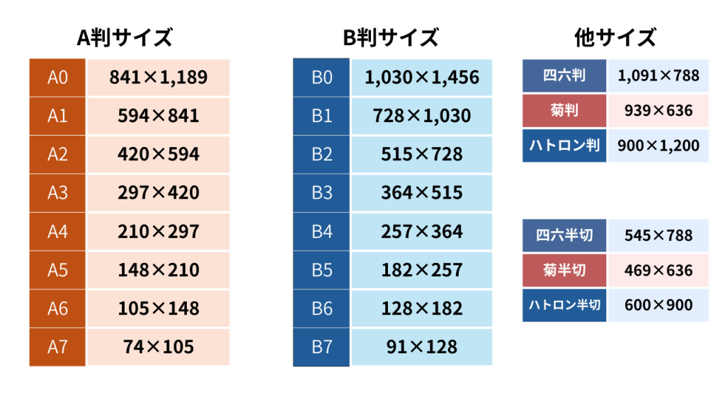 ノートや紙のサイズは主にA判・B判に分かれており、これらは日本で身近に使われている主流の印刷サイズになります。