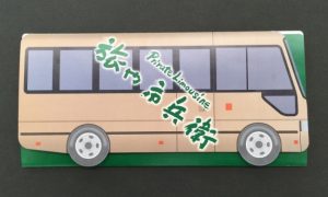 用紙:ブンペルホワイト175㎏ 刷り色:4色/0色 仕上りサイズ:A5(148㎜×210㎜) 型抜き:一言:菅平で行われた「金門錦サミット2018」の際にも使われたもので、 金太郎と熊さんの丸いフ…