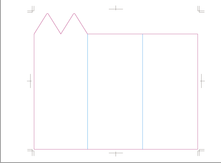 ポイント:紙を折りやすくするため、また正確な位置で折るための目安として、折り目にはスジ加工を行います。データ上は実線で作成してください。